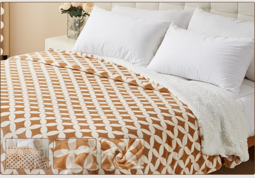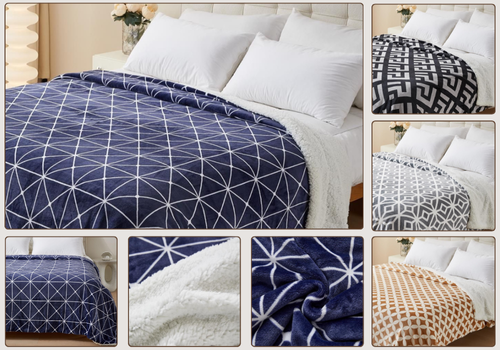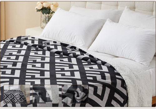 Disfruta de una sensación de abrigo envolvente con esta manta borreguito de estampado geométrico. Su interior tipo borreguito aporta una calidez inmediata, mientras que el exterior suave garantiza una textura agradable y acogedora, ideal para los meses fríos o para relajarte en el sofá.